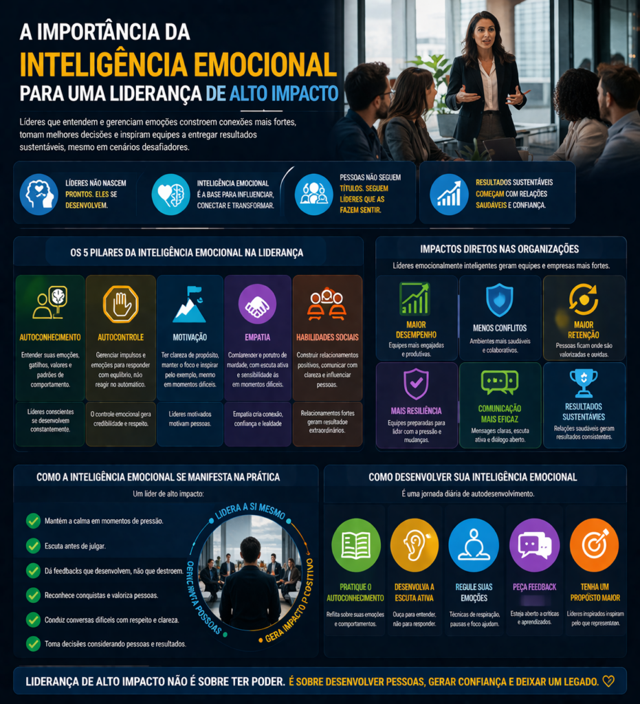 Em um mundo corporativo marcado por pressão constante, mudanças rápidas e alta complexidade, a liderança deixou de ser apenas técnica. Hoje, líderes de alto impacto são aqueles capazes de gerenciar emoções — próprias e dos outros — com inteligência, equilíbrio e estratégia.